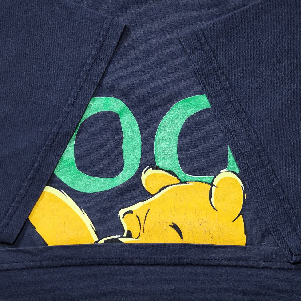 ネイビーボディに大胆なPoohのフロントプリントが映える、シンプルながら存在感抜群の1枚です。