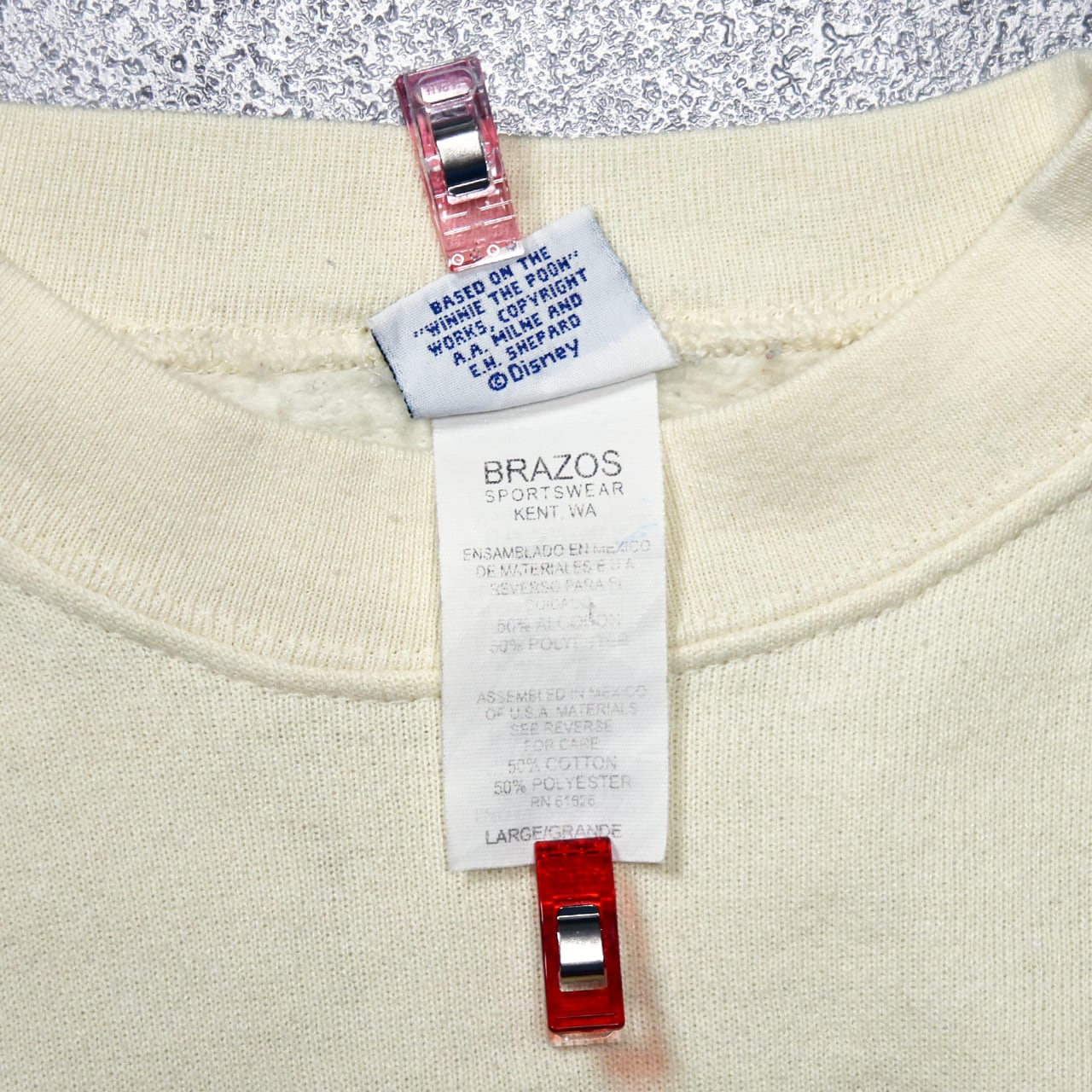 Brazos Sportswear ボディ(USA企画)で、90s〜2000s初頭らしいゆったりしたシルエットが特徴です。