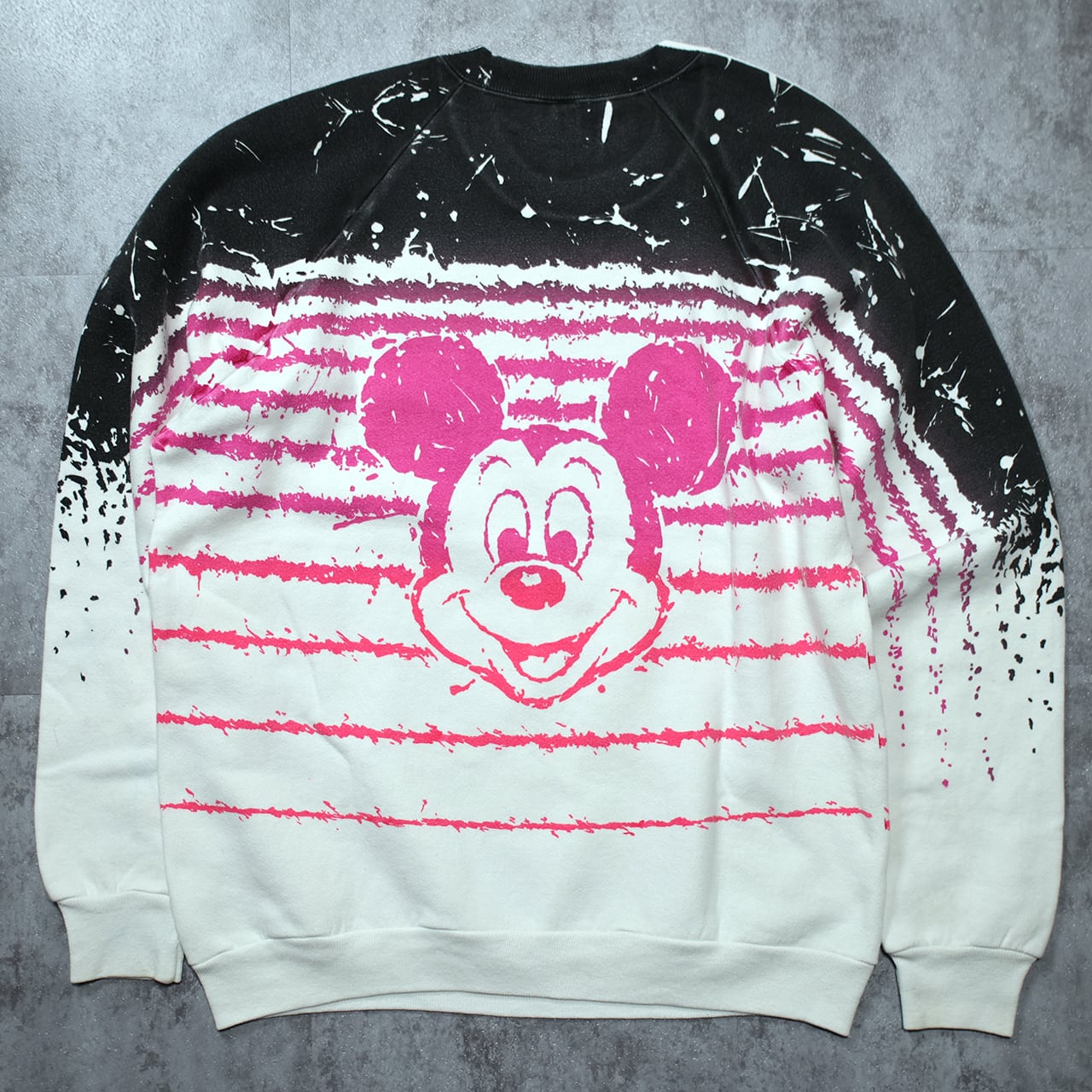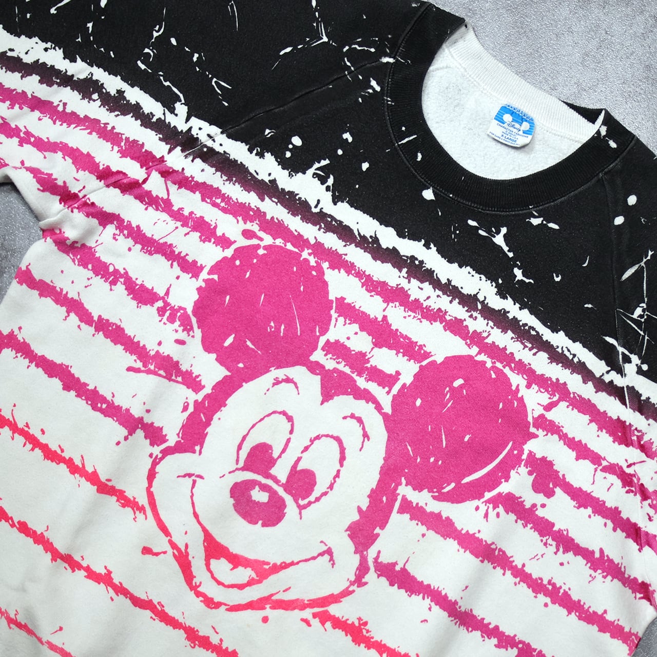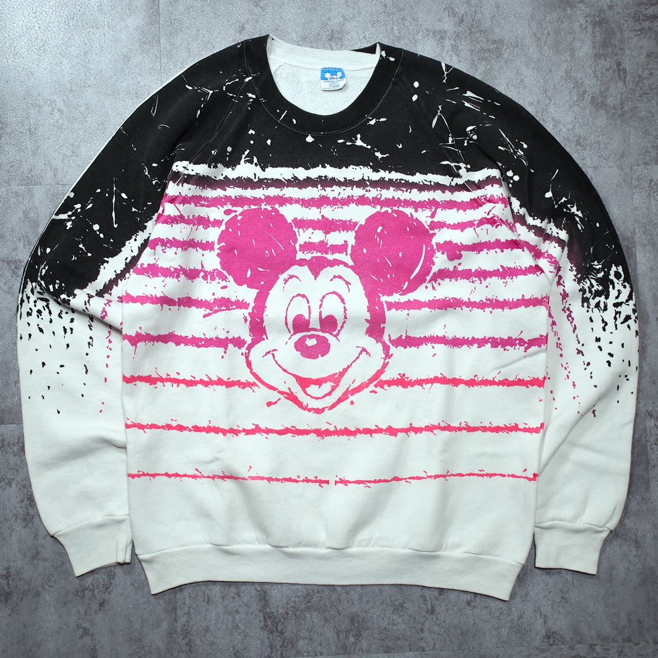 90年代らしい大胆な総柄デザインが魅力のミッキーマウス・スウェット。