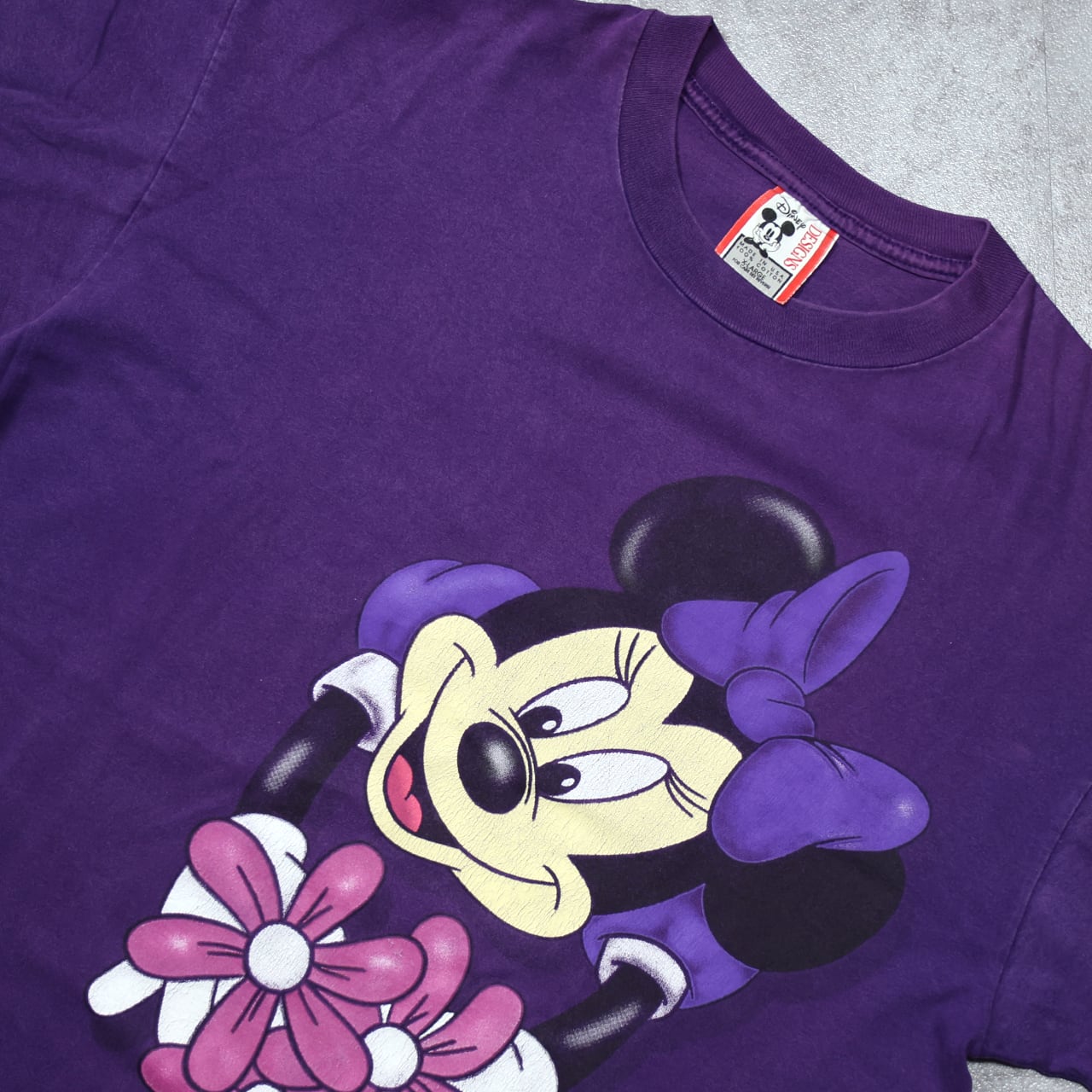 豊かな発色のプリント、前後で異なるグラフィックの組み合わせは現行ではなかなか見られず、ヴィンテージならではの魅力。ミニー好きにも、90sキャラT好きにもおすすめできる1枚です。