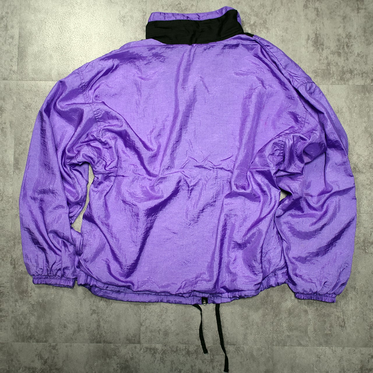 パープルとブラックのバイカラーが目を惹く、当時らしいシャカシャカ素材のナイロンジャケットです。