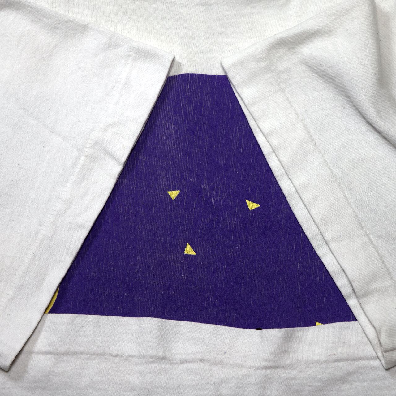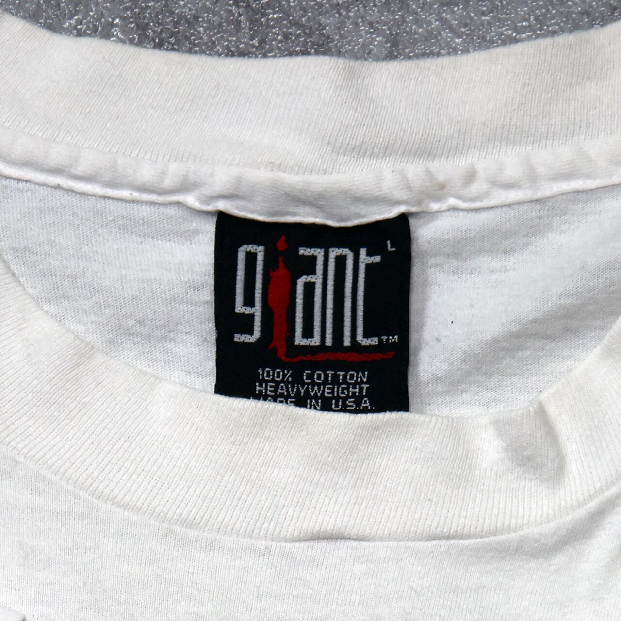 ボディは人気の giant(ジャイアント)タグ × Made in U.S.A.。ヘビーウェイトコットン特有の硬めでタフな質感は、当時のライブ物を象徴するディテール。プリントは大判でインパクトが強く、アートTとしても評価の高いグラフィックです。