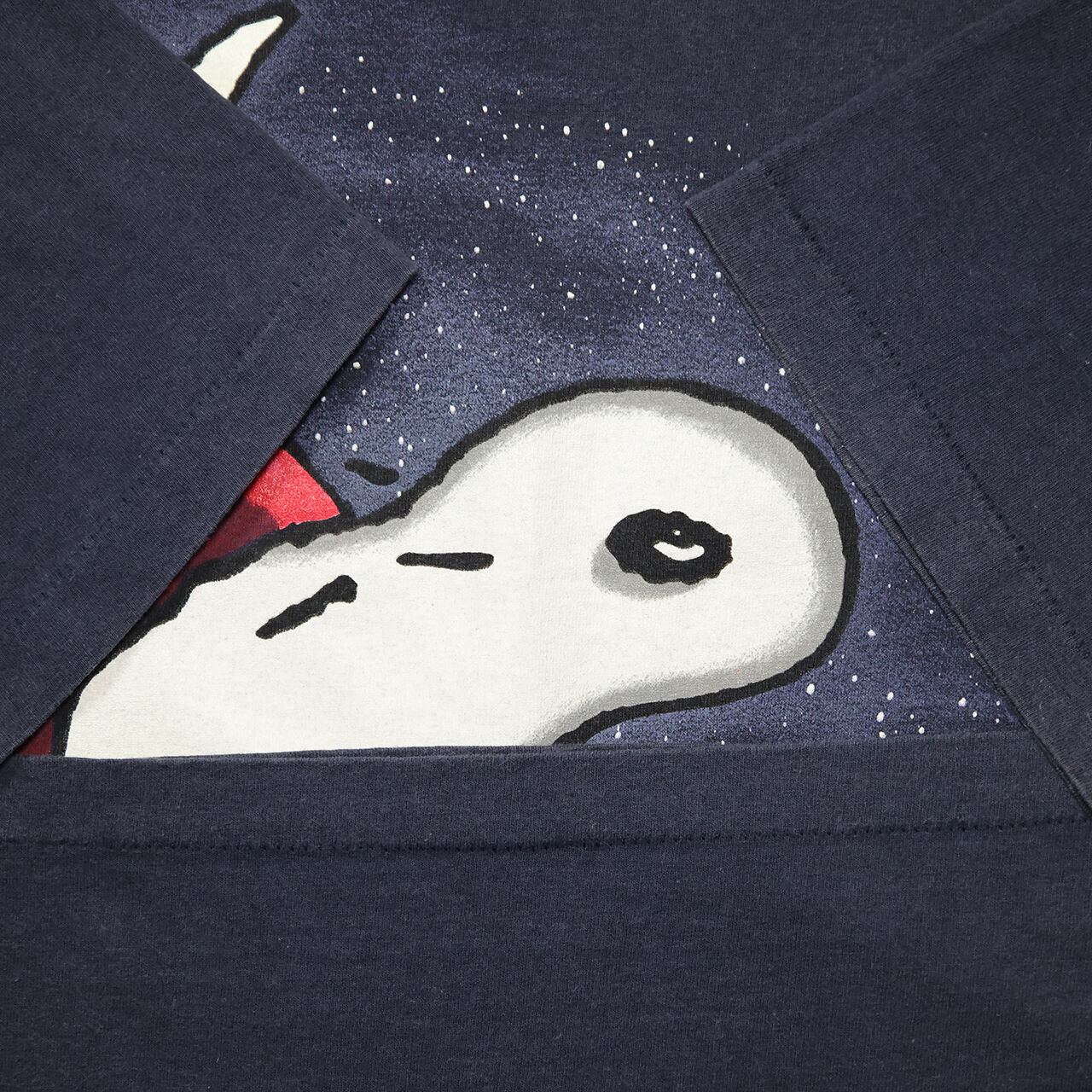 大きなプリントで Snoopy と Woodstock が月の上で寄り添いながら眠るデザインがフロント&バックに大胆に描かれています。