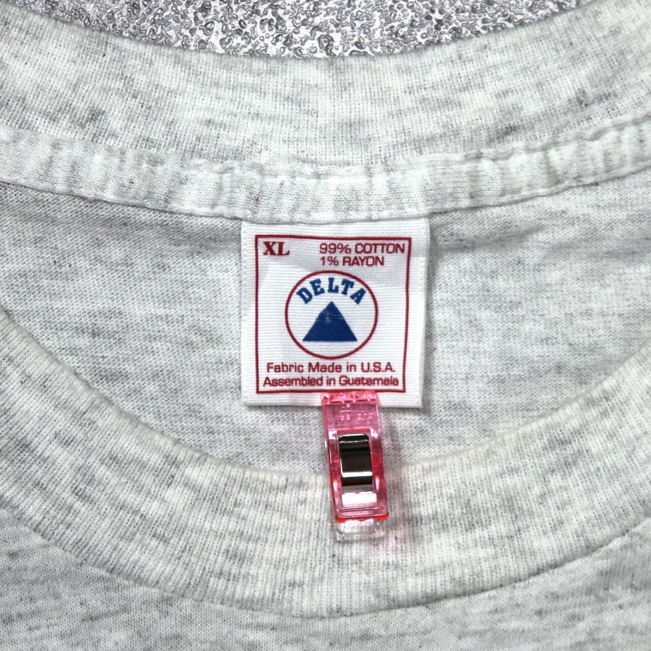 柔らかな杢グレーの生地感と、程よくフェードしたプリントの雰囲気がヴィンテージ感を引き立てています。