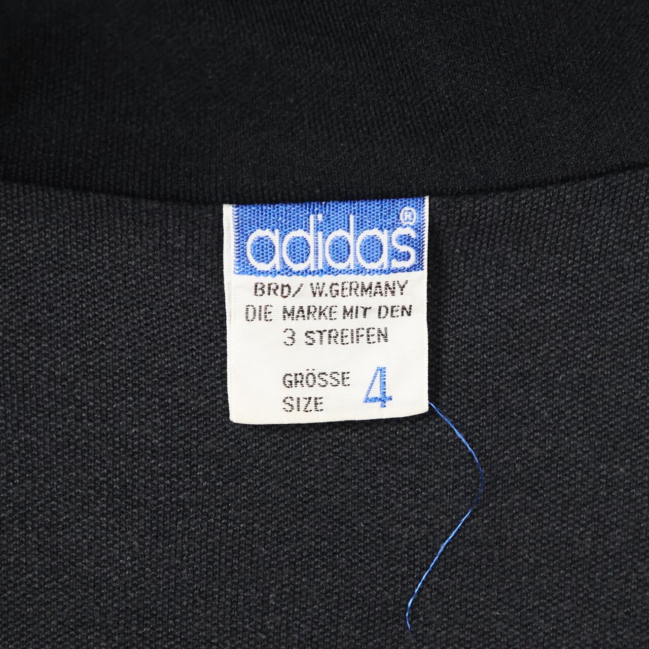 アディダスの80年代・西ドイツ企画(BROJ W.GERMANY表記)のトラックジャケット。デサント社による国内ライセンス生産で、当時ならではの重厚なコットン混生地と端正なシルエットが魅力の一着です。