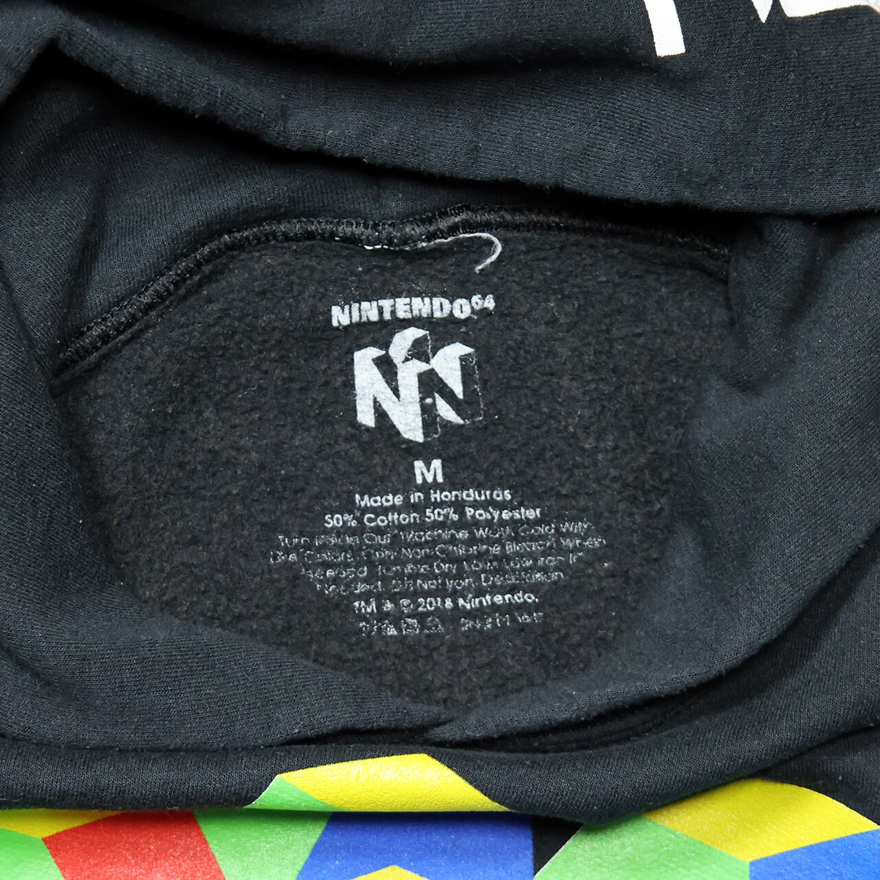 90年代のゲームカルチャーを象徴する「Nintendo 64」ロゴを大胆にプリントしたフーディ。