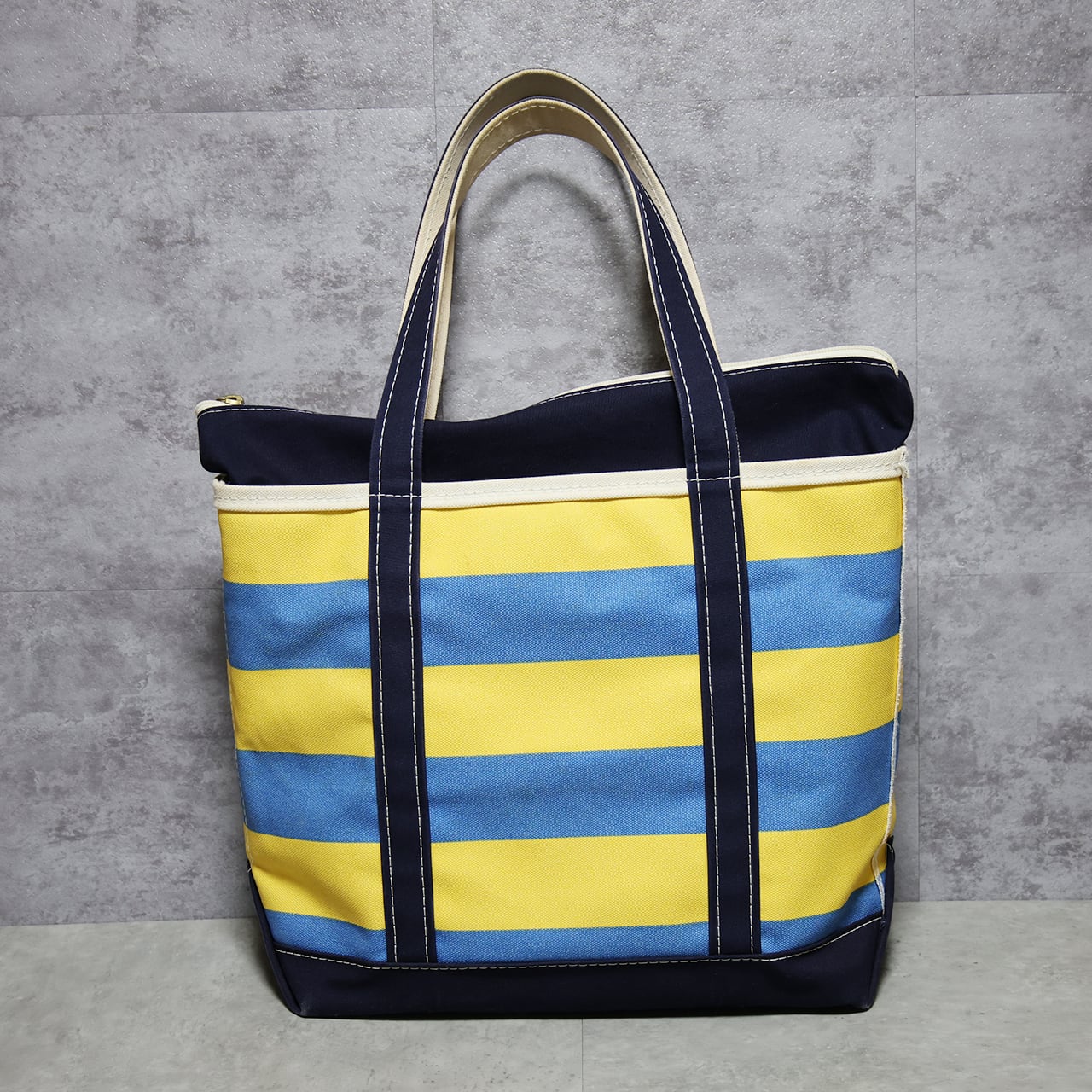 L.L.Bean / Boat & Tote Bag / Medium (M) / Zip Top / Stripe / Yellow / Blue