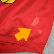 レッドボディに映える躍動感のあるデザインで、90年代らしいポップさと存在感を備えた一着です。