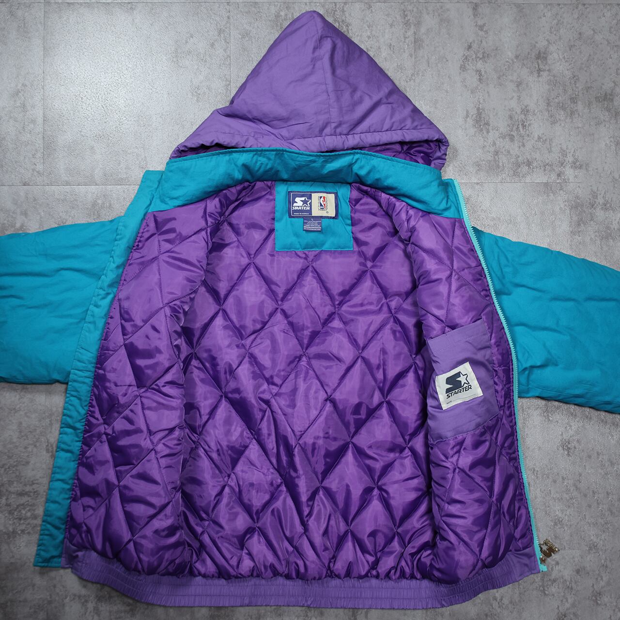 STARTER × NBA Charlotte Hornets Hooded Jacket / 1990s / Teal × Purple / L