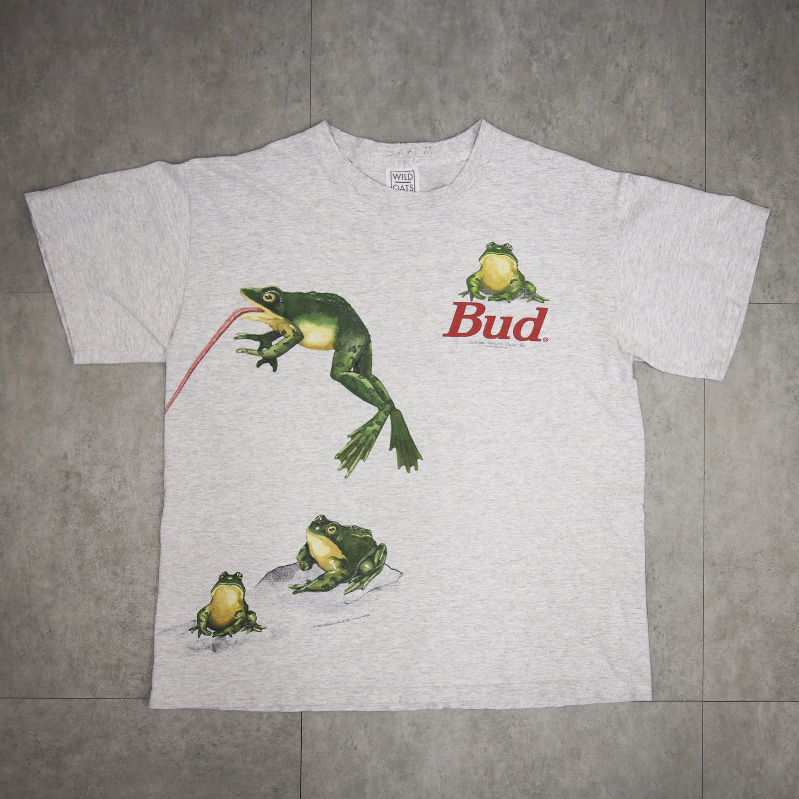 Budweiser Frog Graphic T-Shirt / 1990s / Gray / Made In USA / Wild Oats / L