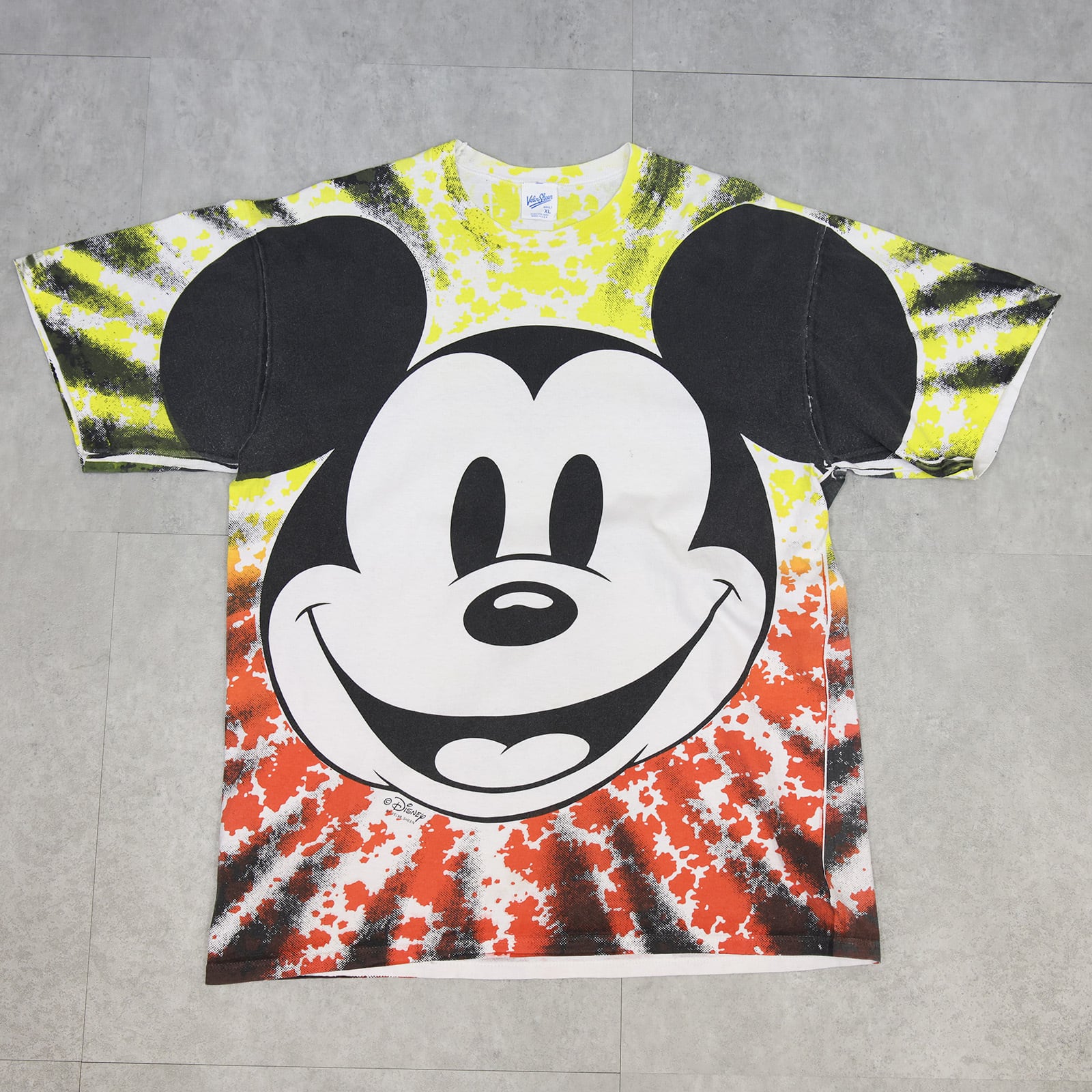 90s Mickey Mouse Big Face Tie-Dye T-Shirt / Velva Sheen / USA製 / XL